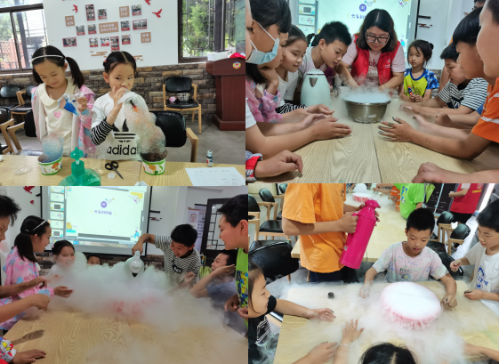 隨后,為了讓小朋友們體會到科學(xué)實踐的魅力,老師們準(zhǔn)備了“云朵初體驗”科學(xué)實驗互動。老師帶領(lǐng)小朋友們動手制造了“干冰云海”和“干冰泡泡”實驗,在一片片“云霧”中,同學(xué)們化身“孫悟空”騰云駕霧,不禁感嘆道:干冰太神奇了!孩子們通過看一看,摸一摸,聞一聞,與干冰做了近距離的接觸,感受到了科學(xué)探索的樂趣,整個現(xiàn)場充滿了歡聲笑語。