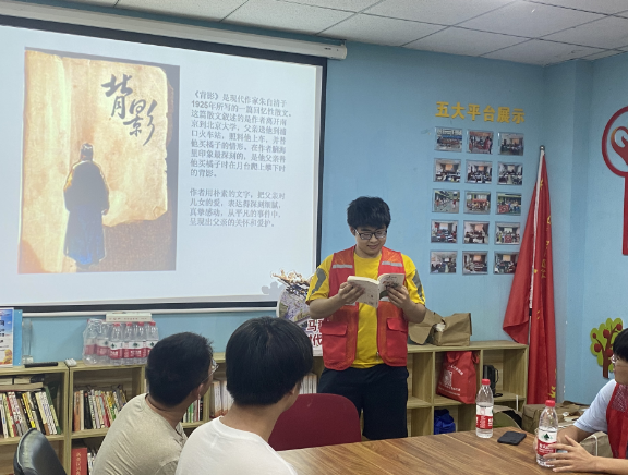 在活動(dòng)尾聲,此次活動(dòng)參與者分享了《背影》的讀后感。篇中的人物語(yǔ)言,看來(lái)很平常,可是都帶著濃厚的感情。的確如此,哪怕是一個(gè)簡(jiǎn)簡(jiǎn)單單的感慨號(hào),都值得大家細(xì)細(xì)品味,感受細(xì)微處的父愛(ài)。語(yǔ)言的力量是可以穿越時(shí)空的,父愛(ài)無(wú)言,一字一句沉甸甸。