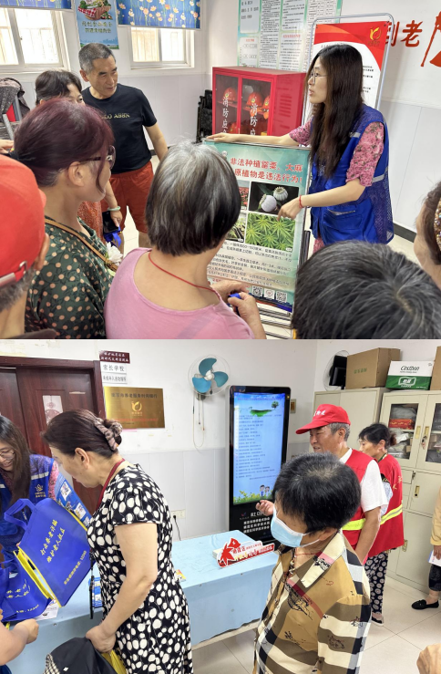 活動中,網(wǎng)格員、科技志愿者通過擺攤設(shè)點、發(fā)放宣傳單和現(xiàn)場講解等形式,向社區(qū)居民宣傳講解毒品的種類、危害和相關(guān)法律法規(guī),重點講解了當(dāng)下新型毒品偽裝十分狡猾,正常情況下難以分辨。耐心解答細致解答群眾提出的問題,鼓勵引導(dǎo)居民要主動學(xué)習(xí)禁毒知識。并提醒居民群眾:在日常生活中一定要提高防范意識,保護自身免受毒品侵害。不食用陌生人給予的食物,謹慎交友。同時,若發(fā)現(xiàn)可疑人員及可疑物品時,居民應(yīng)及時向社區(qū)和公安機關(guān)進行報告,遠離毒品,為構(gòu)建平安社區(qū)盡一份力量。