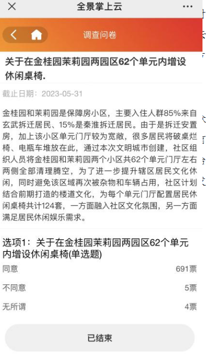 近日,金陵驛社區(qū)通過“掌上云”平臺(tái)投票系統(tǒng)針對(duì)增設(shè)休閑桌椅事項(xiàng)征求轄區(qū)居民意見,此項(xiàng)舉動(dòng)在“掌上云”小程序里得到了居民的大力支持。“線上議事真的是太方便我們居民了,以前張貼告示有什么意見還需要再去社區(qū),現(xiàn)在手機(jī)上就能操作了。”老黨員田師傅激動(dòng)地說。