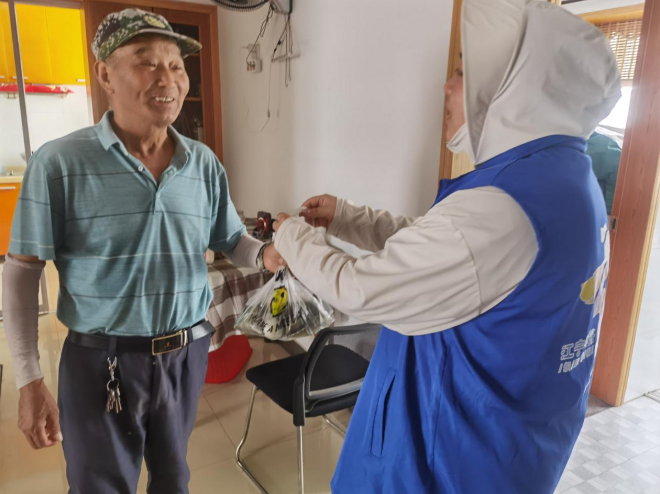 現(xiàn)場,社區(qū)網(wǎng)格員走訪慰問了8戶孤寡老人,切實把溫暖送到他們的家中。網(wǎng)格員帶著濃濃的節(jié)日情意,陪著老人嘮家常,了解他們的生活近況、身體情況,聽聽他們的需求。其中一名老人感慨:“感謝政府,生活在這個年代我很幸福,我一定要好好保重身體。”臨走時,社區(qū)網(wǎng)格員特別叮囑老人們要健康飲食,加強鍛煉,注意出行安全,保持樂觀心態(tài)。