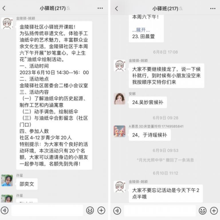 活動(dòng)前期,金陵驛社區(qū)網(wǎng)格員們通過微信群發(fā)布活動(dòng)信息,組織居民群眾在掌上云平臺(tái)線上報(bào)名,簡化了報(bào)名流程,共招募了20組家庭參加。社區(qū)工作人員根據(jù)掌云后臺(tái)統(tǒng)計(jì)的報(bào)名人數(shù)準(zhǔn)備相應(yīng)的活動(dòng)材料。