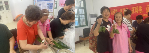 社區(qū)還在本次活動中安排了包粽子活動環(huán)節(jié)?;顒蝇F場,社區(qū)工作人員提前準備好了糯米、紅棗、粽葉等食材,工作人員講解了包粽子的具體方法,并作出示范。居民們圍在一起,大家躍躍欲試想展現自己技術。糯米、紅棗等在粽葉中填滿扎牢,一只只包含愛意祝福的粽子在“老行家”們的手中迅速成形。沒有經驗的新手在社區(qū)工作人員的幫助下,邊看邊學,直至熟練掌握包粽子技巧。大家互幫互助,協力合作,活動現場粽葉飄香,傳來一陣陣歡笑聲。