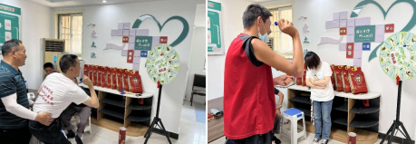 每到端午節(jié),也正值夏至?xí)r節(jié),民間會(huì)采用各種方法來預(yù)防五毒之害。此次端午之際,工作人員將五毒貼紙?zhí)谵D(zhuǎn)盤上,讓大家用扔飛鏢的形式來“驅(qū)趕”五毒。在工作人員的引導(dǎo)下大家熱情高漲,積極參與,活動(dòng)現(xiàn)場氛圍很活躍。