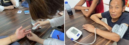 在活動(dòng)的最后,工作人員為在場的部分成員測量血壓、血糖,有些殘疾人、老人血壓血糖偏高,工作人員為其耐心的講解一些健康知識,教會(huì)其如何降壓降糖、健康飲食及體檢的重要性。