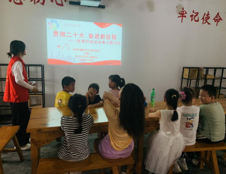 新征程時(shí)不我待,新使命催人奮進(jìn)。為幫助廣大青少年學(xué)習(xí)好、理解好、貫徹好、落實(shí)好黨的二十大精神,讓黨的二十大精神入腦入心,激發(fā)青少年學(xué)生愛(ài)黨學(xué)黨熱情,切實(shí)把思想和行動(dòng)統(tǒng)一到黨的二十大精神上來(lái)。7月3日上午,南京市江寧區(qū)淳化街道西埠村新時(shí)代文明實(shí)踐站聯(lián)合木蘭花開婦兒服務(wù)站,開展“貫徹二十大 奮進(jìn)新征程”西埠村閱讀經(jīng)典活動(dòng)。