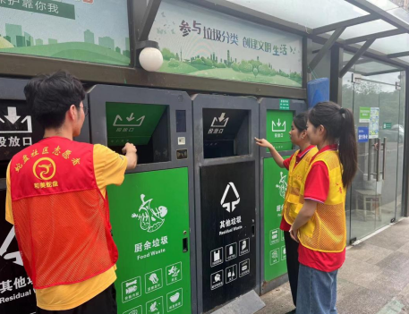 活動一開始,社區(qū)志愿者帶領(lǐng)學生參觀小區(qū)內(nèi)設(shè)立的垃圾分類環(huán)保屋,通過實地了解垃圾分類的重要性和正確方法,加深對環(huán)保知識的認識。通過志愿者的講解,大家了解不同垃圾類別的處理方式,并學習如何做到垃圾分類的正確投放。