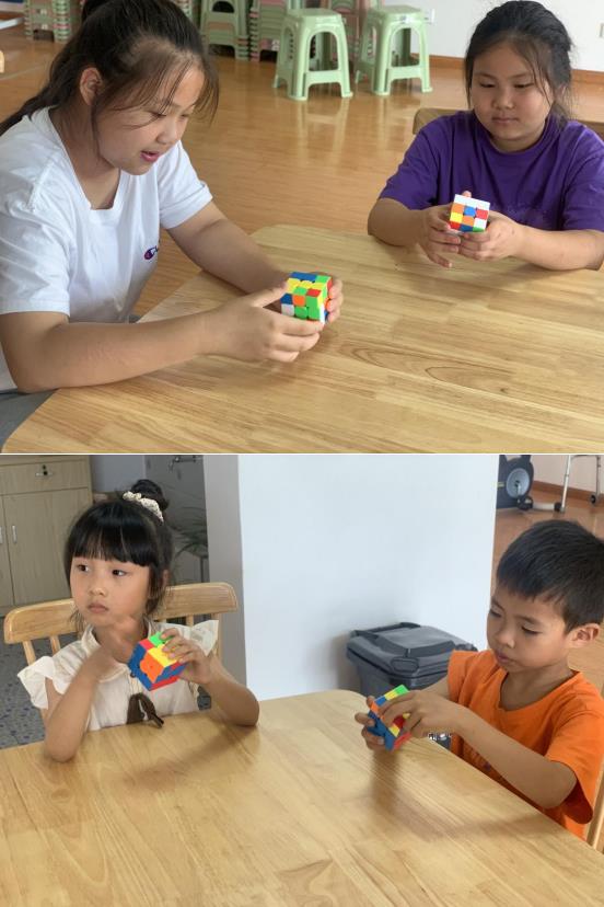 在魔方認識環(huán)節(jié)中,志愿者巧妙設計了一系列趣味互動,讓青少年們親自動手操作魔方,體驗其中的樂趣。他們個個興致勃勃,爭相挑戰(zhàn)自己的速度和技巧。在志愿者的指導下,青少年們迅速掌握了基本的轉動方法,逐漸提高了對魔方的理解力。
