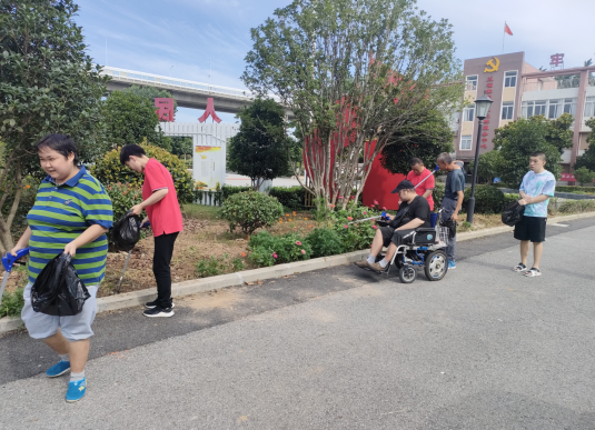 五福家園殘疾人之家:清理綠化帶垃圾 美化環(huán)境文明行