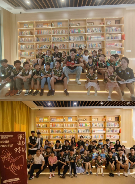 此次活動集國防教育、紅色歷史,退伍軍人分享,閱讀經(jīng)典及實踐活動為一體,為了激發(fā)小朋友們的愛國情懷,通過閱讀國防相關(guān)書籍、了解國家的歷史和軍事背景,小朋友們可以增強對國家安全的意識?;顒娱_始,在主持人和暑期社會實踐調(diào)研團志愿者們的幫助下,小朋友挑選自己喜歡的書籍并安靜閱讀,隨后實踐團成員--退伍士兵邢奧分享自己的軍旅故事并介紹董存瑞炸碉堡這本紅色經(jīng)典書籍,伴隨著故事和經(jīng)歷的分享,那些被時間深埋的記憶一幕幕浮現(xiàn)在人的眼前。加深了小朋友們對和平的期冀,讓小朋友們了解到國防安全的重要性。分享環(huán)節(jié)結(jié)束后,參與本次讀書分享會的小朋友在志愿者的帶領(lǐng)下共同整理書籍,用實踐加深小朋友對國防安全的認知。在社區(qū)傳播了國防安全的文化和意識,讓大家?guī)е鴮ο攘业某缇春蛯业臒釔?,踏上傳承紅色精神的征程,播下希望的火種,為實現(xiàn)中華民族的偉大復興砥礪前行。