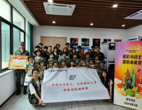 本次活動邀請到了20余名新華社區(qū)黨群服務中心的小朋友,通過此次國防游戲體驗活動萌發(fā)社區(qū)兒童的愛國情懷,同時培養(yǎng)他們的良好習慣,促進國防教育的傳承和發(fā)展,并且加深社區(qū)兒童對軍事裝備和軍事文化的了解?;顒託v時一天,活動伊始由暑期社會實踐調(diào)研團退伍軍人給小朋友講了此次活動的秩序,根據(jù)此次活動將小朋友按男女分成了兩排,活動開始,暑期社會實踐調(diào)研團志愿者為小朋友穿上了迷彩服,分發(fā)了帽子。隨后,由團隊退伍軍人的帶領(lǐng)進行站軍姿、列隊、敬禮、立正、稍息,小朋友隊列整齊,在退伍軍人的指揮下小朋友們站姿挺拔,面相時刻保持著嚴肅、眼睛炯炯有神,有的動作不到位時都及時的糾正,有的小朋友身體線條流暢,站姿標準,并且踴躍展示給大家。訓練結(jié)束后,大家有序的回到教室內(nèi)坐在各自的位置上,退伍軍人教了小朋友們唱軍歌,大家都認真的投入進來,學著強軍戰(zhàn)歌,聲音洪亮,氣勢如虹,響徹整間教室。下午團隊退伍軍人帶領(lǐng)著小朋友秩序井然的去了器材室,他們認真聆聽著防暴盾、防爆鋼叉及救生圈的使用等;還有被子的疊法,小朋友圍成半圓,看著退伍軍人的講解和疊法,伴隨著“壓、折、擠、掏”,小朋友們會舉手提出各自的疑問,展現(xiàn)出了對軍事裝備和軍事文化的熱愛和好奇,最后進行了社區(qū)內(nèi)的“重走長征路”活動,小朋友們歌唱強軍戰(zhàn)歌,成為了社區(qū)靚麗的風景線。通過此次活動,小朋友們不僅親身體驗了國防軍事的精彩樂趣,也展現(xiàn)出了對軍事裝備和軍旅文化的熱愛和好奇。這次活動的成功,讓國防教育和親身體驗巧妙地結(jié)合在一起,也是國防意識在兒童中良好開展的重要形式。兒童通過自己的體驗既豐富暑期生活也激發(fā)了孩子們濃濃的愛國情。