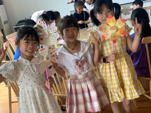 除了繪畫(huà)活動(dòng),還特意設(shè)置了一個(gè)小型的展覽區(qū),供孩子們展示自己的作品。孩子們驕傲地將他們精心繪制的風(fēng)車(chē)擺放在展覽區(qū),彼此欣賞和交流。這不僅給了孩子們展示創(chuàng)意和想象力的機(jī)會(huì),也為他們提供了互相學(xué)習(xí)和啟發(fā)的平臺(tái)。