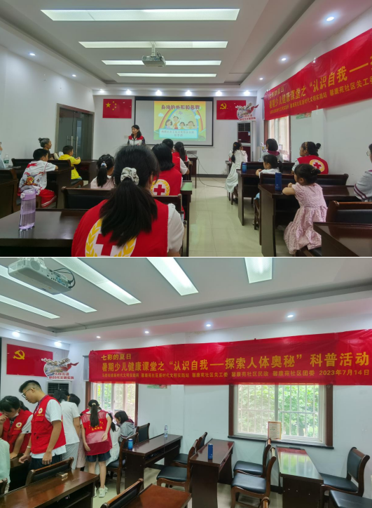 為了提升小朋友們的認知能力,探索身體的奧秘,促進轄區(qū)未成年人之間交流,2023年7月14日上午南京市棲霞區(qū)馬群街道馨康苑社區(qū)新時代文明實踐站聯(lián)合馬群街道新時代文明實踐所、社區(qū)關(guān)工委、社區(qū)民政、社區(qū)紅十字會開展了暑期少兒健康課堂之“認識自我——探索人體奧秘”科普講座活動,本次活動由棲霞區(qū)紅十字會志愿者為青少年科普講解。