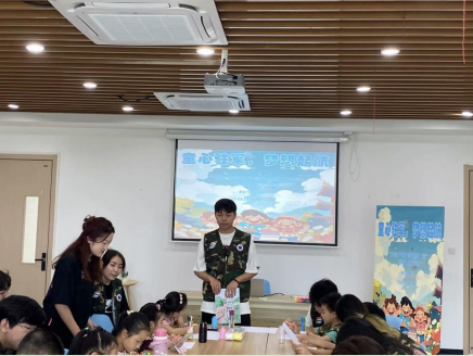 7月6日上午,南京交通職業(yè)技術(shù)學(xué)院電子信息工程學(xué)院“賡續(xù)江寧星火,鳴奏國防之章”暑期社會實踐調(diào)研團(tuán)在新華社區(qū)黨群服務(wù)中心舉辦“童心筑軍,夢想起航”國防手工藝活動。