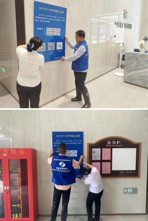 為進(jìn)一步推動(dòng)落實(shí)《南京市棲霞區(qū)安全生產(chǎn)舉報(bào)獎(jiǎng)勵(lì)辦法》,提高群眾安全生產(chǎn)意識(shí),扎實(shí)開(kāi)展安全生產(chǎn)工作,7月17日上午,石壩社區(qū)在各寫(xiě)字樓大門(mén)和公寓內(nèi)人群集中場(chǎng)所張貼安全生產(chǎn)舉報(bào)獎(jiǎng)勵(lì)公告牌,做到宣傳入戶、轄區(qū)覆蓋。