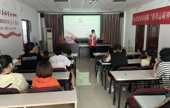 2023年7月14日下午,果場(chǎng)社區(qū)關(guān)工委、未保站、居民學(xué)校依托社區(qū)新時(shí)代文明實(shí)踐站,聯(lián)合鐘山職業(yè)技術(shù)學(xué)院井岡山精神青年宣講團(tuán),在社區(qū)三樓活動(dòng)室,組織社區(qū)未成年人開展文明有“寧” 攜手同行主題宣講,宣講標(biāo)題為“不忘初心 繼續(xù)前行”。