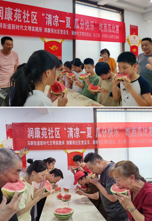 活動(dòng)現(xiàn)場(chǎng),在社區(qū)工作人員以及社區(qū)民兵志愿者的指導(dǎo)下,孩子們共同畫著團(tuán)扇討論著各自的暑期生活。適逢酷暑,為增強(qiáng)轄區(qū)大朋友和小朋友的團(tuán)隊(duì)意識(shí),營(yíng)造溫馨、和諧的鄰里氛圍,夏令營(yíng)還開(kāi)展了“清涼一夏,瓜分快樂(lè)”趣味吃西瓜比賽活動(dòng)?;顒?dòng)的開(kāi)展既豐富了社區(qū)青少年的暑期生活,更為孩子們?cè)谶@個(gè)夏天留下了難忘的回憶。