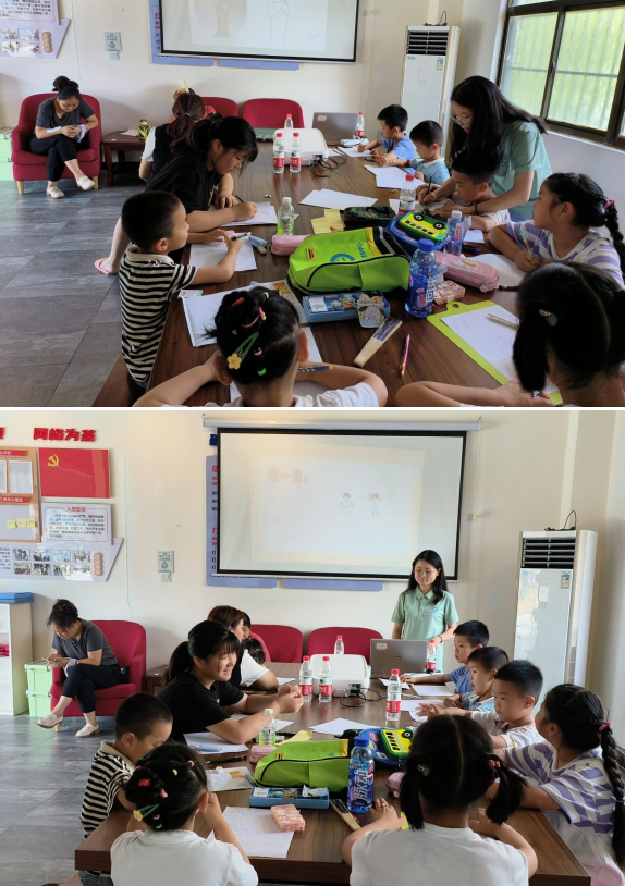 “小朋友們,你們看黑板上的這個偏旁,先看看老師是怎么寫的再動筆。”“老師老師,我已經(jīng)可以寫很難的第四個字了!”為幫助家長解決漫長暑期沒空陪伴孩子,讓孩子不沉迷電子產(chǎn)品,豐富孩子們的暑期生活,在“雙減”政策的指引下,南京市江寧區(qū)湖熟街道尚橋社區(qū)聯(lián)合南京曉莊學(xué)院文學(xué)院“無邊界”教育實踐團,在陡門口網(wǎng)格站開辦愛心暑托班,解決家長照看難題,助力孩子們健康快樂成長。