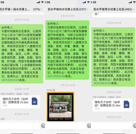 前期,社區(qū)通過(guò)“掌上云”微信群線(xiàn)上發(fā)布體檢報(bào)名登記通知,通過(guò)微信線(xiàn)上、電話(huà)登記以及來(lái)社區(qū)現(xiàn)場(chǎng)報(bào)名等多種方式進(jìn)行登記預(yù)約,并在體檢開(kāi)始提前兩天電話(huà)挨個(gè)提醒預(yù)約的居民,告知其具體體檢時(shí)間、地點(diǎn)、內(nèi)容和注意事項(xiàng)等。
