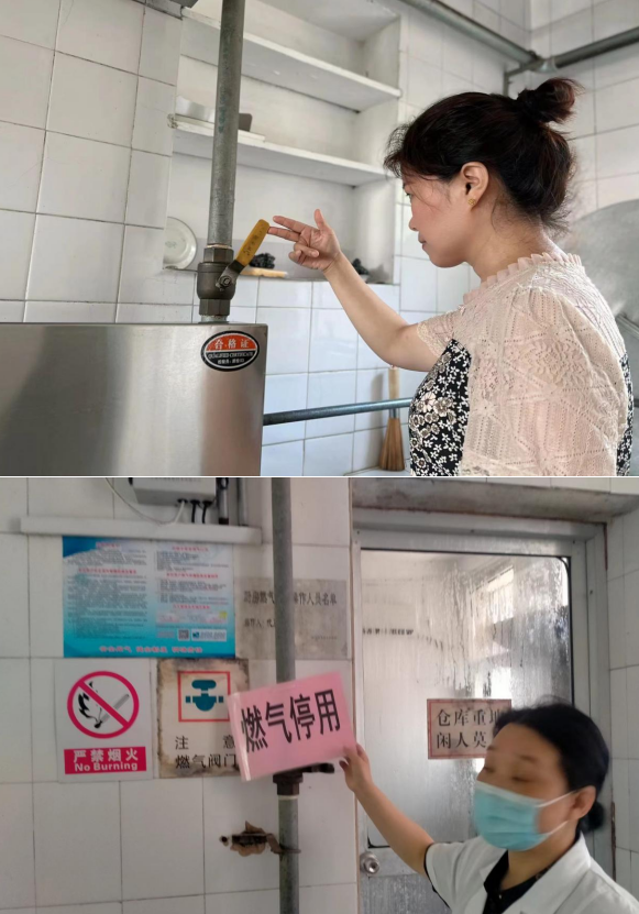 工作人員仔細(xì)查看了廚房內(nèi)燃?xì)庠O(shè)備的使用,包括有無熄火保護(hù)裝置、連接軟管是否老化、減壓閥是否可調(diào)、氣瓶距離灶臺(tái)是否超過0.5m等。