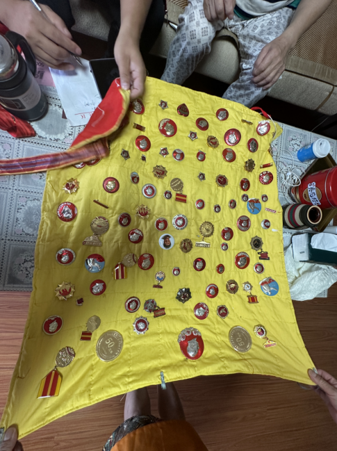 在抗美援朝參戰(zhàn)老兵曾元山老先生家中,社區(qū)退役軍人服務(wù)站副站長陶博同志與曾老進行了親切交談,了解了曾老服役期間的精彩往事,感受到老兵對軍隊的熱愛與保家衛(wèi)國的壯烈情懷,回憶過往,真摯而熱烈的情感猶在。大家仔細(xì)端詳曾老的紀(jì)念徽章及證書,這些都是他以往崢嶸歲月中付出青春熱血所得,每一枚徽章的背后都有著厚重感。