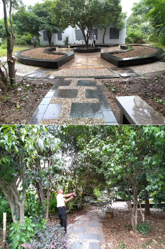 發(fā)現(xiàn)問題后,社區(qū)工作人員迅速行動,依托“掌上云社區(qū)”平臺定時推送信息、加強宣傳,提醒居民不要在花壇綠化出種植蔬菜,影響社區(qū)日常環(huán)境,給居民們造成困擾。隨后,社區(qū)工作人員組織專業(yè)人員立即清除了雜草和雜樹,并對裸露的黃土地區(qū)進行了綠化補植,撒種植草籽。7月12日,歷時兩天,該區(qū)域煥然一新,通過對樹木的修剪整理,不僅讓綠化植物煥發(fā)出勃勃生機,還使其形態(tài)更加美觀整齊,給人一種美感和和諧感。與此同時,修剪去枯枝敗葉和危險的枝條,有效消除了潛在的安全隱患,確保了行人和居民的安全。居民生活環(huán)境變得更加整潔、安全、有序,營造了良好舒適的宜居環(huán)境。