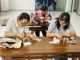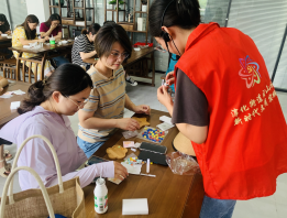 活動(dòng)最后,志愿者引領(lǐng)大家走進(jìn)馬賽克的藝術(shù)世界,志愿者先介紹了制作杯墊所需使用的工具、材料、制作步驟以及注意事項(xiàng)。隨后大家按照步驟,通過發(fā)揮自己的想象力和創(chuàng)造力,擺出獨(dú)具風(fēng)格的馬賽克杯墊造型。然后大家在縫隙里填滿半透明填縫劑,用海綿清除石頭表面殘留的填縫劑。一個(gè)個(gè)普通的杯墊在婦女們的巧手下被賦予了新的生命。
