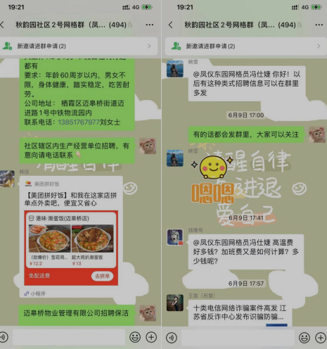 掌上云社區(qū)是南京市棲霞區(qū)邁皋橋街道秋韻園社區(qū)鏈接居民與社區(qū)的重要紐帶,其中2個重要組成部分分別為掌上云社區(qū)群和掌上云小程序,通過一年多的沉淀和鋪墊,目前在掌上云社區(qū)活躍的居民占比超過60%。社區(qū)通過掌上云社區(qū)“紅韻智家”社區(qū)專線發(fā)布各類信息,有社區(qū)活動、社區(qū)動態(tài)、科普知識、生活小技巧等豐富多彩的板塊,除此之外還有社區(qū)居民議事、為民項(xiàng)目投票吸引居民多多參與社區(qū)基層治理,在后疫情時代,社區(qū)工作人員通過統(tǒng)計群內(nèi)信息內(nèi)容發(fā)現(xiàn),居民們對招聘信息的關(guān)注度變高了。