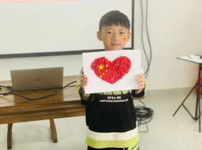 活動最后,志愿者還播放了《地道戰(zhàn)》影片的相關(guān)片段和孩子們一起領(lǐng)略在中國共產(chǎn)黨的領(lǐng)導(dǎo)下,工農(nóng)游擊隊(duì)是如何巧妙與敵人周旋,利用自己的優(yōu)勢打擊敵人的故事。孩子們在紅色書籍和影片渲染下產(chǎn)生了強(qiáng)烈的愛國熱情。隨后,志愿者引導(dǎo)孩子們將自己的愛國熱情通過手工貼畫制作表達(dá)出來。志愿者先給孩子們分發(fā)了手工材料 ,并講解了制作的注意事項(xiàng)。緊接著孩子們就迫不及待地動手制作了起來,沒一會功夫,一幅幅創(chuàng)意貼畫就制作完成了,大家彼此欣賞并主動要求上臺合影留戀。