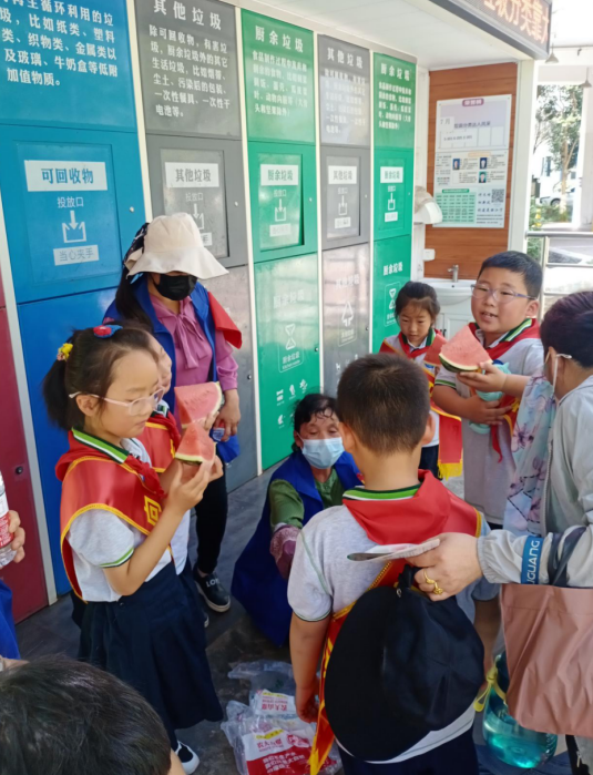 跟隨著社區(qū)工作人員的步伐,同學們來到垃圾分類回收站點。站點上設立了不同的分類桶,同學們按照工作人員的指導,將垃圾分類投放到相應的桶中。他們發(fā)現(xiàn),通過正確分類垃圾,可以減少污染和資源浪費,對環(huán)境保護起到了重要作用。同學們紛紛表示將會在日常生活中積極踐行垃圾分類,以實際行動保護環(huán)境。同時,同學們將自己親手設計的宣傳單分發(fā)給居民群眾們,呼吁更多的人參與到垃圾分類工作中來,激發(fā)了他們參與垃圾分類行動的熱情。