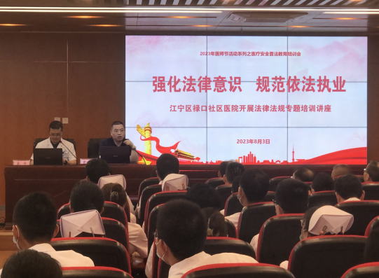 為進(jìn)一步提高醫(yī)務(wù)人員的醫(yī)療質(zhì)量安全、醫(yī)療糾紛防范意識(shí),有效減少醫(yī)療損害和醫(yī)療糾紛的發(fā)生,切實(shí)維護(hù)醫(yī)患雙方的合法權(quán)益,保障醫(yī)療安全。2023年8月3日,南京市江寧區(qū)祿口社區(qū)醫(yī)院特邀請(qǐng)南京市江寧區(qū)衛(wèi)健委法律顧問、律師黃洪根在該院門診綜合樓四樓會(huì)議室開展了以《依法化解醫(yī)患糾紛、構(gòu)建和諧醫(yī)患關(guān)系》為主題的法律知識(shí)講座。本次講座由該院黨支部書記秦牛主持,醫(yī)院全體臨床醫(yī)生、醫(yī)技科室主任、臨床科室護(hù)士長(zhǎng)、職能科室主任、全體實(shí)習(xí)住培生共160多名醫(yī)務(wù)人員參加。