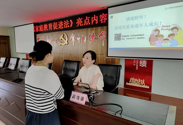 為進一步優(yōu)化婦女兒童生存和發(fā)展環(huán)境,發(fā)揮法治宣傳教育在維護婦女兒童合法權(quán)益、促進社會和諧穩(wěn)定中的重要作用,江蘇省婦女聯(lián)合會、江蘇省婦女兒童福利基金會聯(lián)合實施“我助婦兒康·婦兒權(quán)益維護與安全守護課堂”公益項目。為推動此項目在基層落地發(fā)芽,8月6日,南京市江寧區(qū)江寧街道新銅社區(qū)婦聯(lián)結(jié)合“三全”家庭教育支持行動,聯(lián)合江蘇協(xié)恒律師事務(wù)所,在家長學校開展了“我助婦兒康·婦兒權(quán)益維護與安全守護課堂”之“《家庭教育促進法》亮點內(nèi)容及案例解讀”法治宣傳講座。