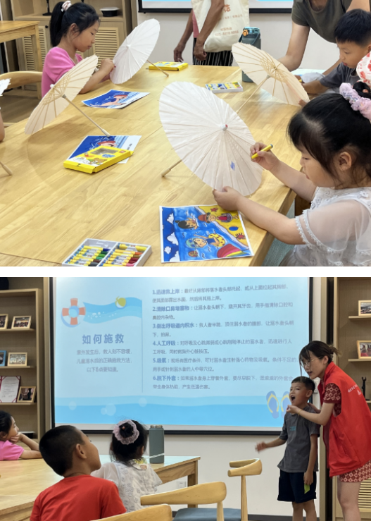 活動中,牛首社區(qū)志愿者通過播放防溺水安全教育宣傳片、講案例、圖片演示等方式,結(jié)合幼兒園小朋友的年齡和心理特點以生動形象、通俗易懂的語言與小朋友們互動。志愿者還現(xiàn)場教給了大家萬一遇到溺水情況后,如何展開施救的六點方法。最后,進行了防溺水主題宣傳畫手工制作,小朋友們在紙傘上作畫和制作小手工作品,活動結(jié)束,小朋友們舉著自己畫好的五顏六色的傘合照,都玩得非常開心。
