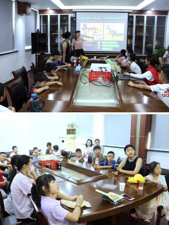 在活動中,社區(qū)志愿者以生動形象的語言向青少年介紹了人類發(fā)現恐龍的歷史及研究進程,青少年們聚精會神地傾聽著,仿佛置身于一個神秘的歷史世界。隨后,志愿者們以提問互動的形式向孩子們科普了地球生物的演化順序,簡單概括了不同時期恐龍的種類與特點。鼓勵大家談談自己對恐龍的看法和認知,激發(fā)了青少年們的思考和參與。