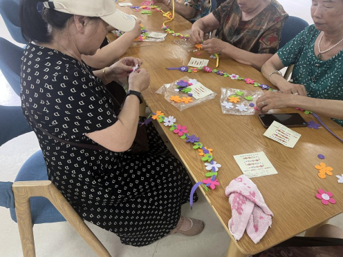 活動(dòng)現(xiàn)場(chǎng)熱鬧非凡,老年朋友們相互交流并愉快地分享自己的經(jīng)驗(yàn)和感受。通過(guò)這次活動(dòng),老年朋友們不僅獲得了一件可愛(ài)又獨(dú)特的花朵項(xiàng)鏈,更重要的是收獲了快樂(lè)和歸屬感。