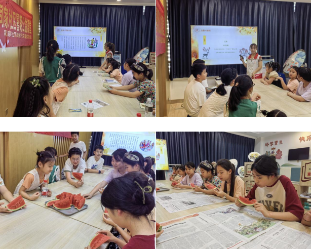 結(jié)業(yè)當(dāng)日正值立秋,秋天正悄悄來臨,“清商時序,萬物收斂,正是讀書好時節(jié)”。在社工的帶領(lǐng)下,大家了解了立秋節(jié)氣的特點(diǎn)、民俗和文化。 立秋之日步能少了民間素有的“啃秋”習(xí)俗,大家用西瓜“啃”去余夏暑氣,“啃”掉“秋老虎”,迎接秋高氣爽宜人好天氣。