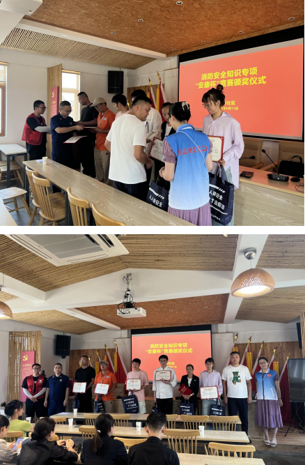 實操結束后,所有人返回會議室,結合消防大隊同志所講及演練所學,對各位參培人員進行現場測驗,開展線上知識競賽,對成績排在前六名人員,頒發(fā)證書及獎品。