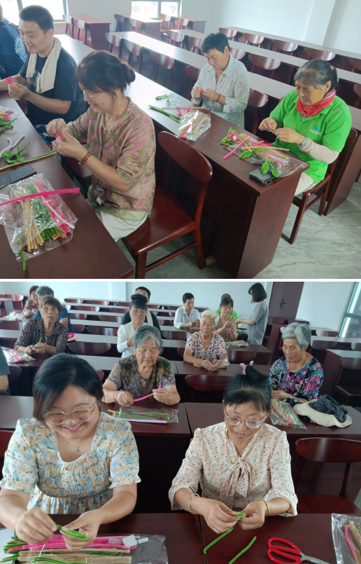 隨后,活動進入了一個富有創(chuàng)意的DIY環(huán)節(jié),志愿者給在場的村民現(xiàn)場準備了豐富的材料和工具,仔細講解了DIY扭扭棒花束盆栽的制作方法和注意事項,并耐心解答了村民們提出的疑問。制作過程中,各位積極融入其中,發(fā)揮自己的創(chuàng)造力。手中的花材和扭扭棒被巧妙地組合在一起,變成了色彩斑斕、生機勃勃的花束盆栽。每個參與者都全心投入地完成了自己的作品,并在志愿者的指導下,將它們裝飾得更加精美。這些成品不僅展示了殘疾人的才華和藝術感,同時也是他們對美好生活的向往和追求。