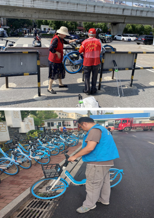 為此,南京市棲霞區(qū)馬群街道百水家園社區(qū)城市治理志愿者,黨員志愿者,退役軍人志愿者們,冒著炎炎夏日將小區(qū)內(nèi)的共享單車搬到共享單車的指定停放處,特別是百水家園小區(qū)南門口,那里雖然有防止送回外賣送餐人員抄近路設(shè)置的單項(xiàng)圍欄,共享單車也被一些沒有素質(zhì)的居民騎進(jìn)了小區(qū),并隨意停放在南門大門口這里,退役軍人志愿者和黨員志愿協(xié)力將共享單車搬出圍欄,放在外面的非機(jī)動(dòng)車停車位上,經(jīng)過努力小區(qū)的共享單車又一次的被整體的清理干凈,小區(qū)的面貌得到了極大的改觀,而共享單車整齊的排放,成了另一道風(fēng)景線。