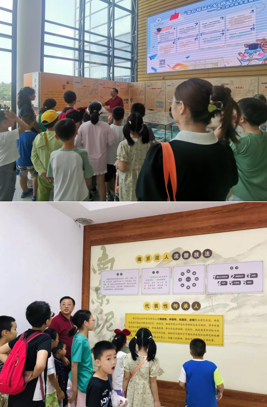 研學(xué)中,在圖書館田劍君老師的帶領(lǐng)下,小朋友們依次參觀了河海大學(xué)圖書館百年發(fā)展史、金壇刻紙展、密集書庫、外文書庫、噴泉魚池、南京泥人展和《紅樓夢》中的茶文化主題展,大家認真傾聽,在浩瀚書海與精美展覽中感受著圖書館的歷史變遷與中華優(yōu)秀傳統(tǒng)文化的魅力,讓閱讀種子與民族精神在孩子們心中生根發(fā)芽。