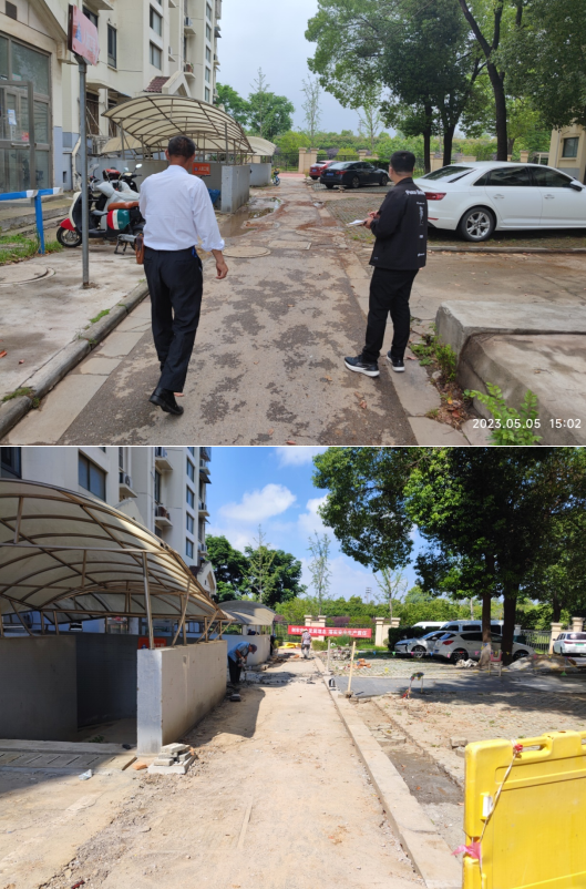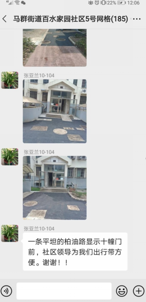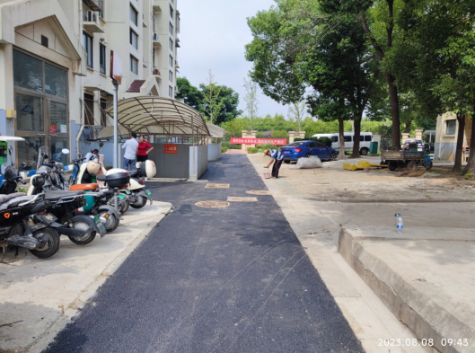 工程開始之前,百水家園社區(qū)新時代文明實踐站開展了居民“線上線下”議事會,討論通過了該路段的維修方案。該工程于2023年8月1日進場,8月15日竣工,原本一條破損低洼的路面煥然一新,變成了一條嶄新的柏油路面,增加了2個雨水篦子,修復(fù)了原本低洼破損的單元門前道路。居民們在現(xiàn)場和微信群里都表達了對社區(qū)的感謝。