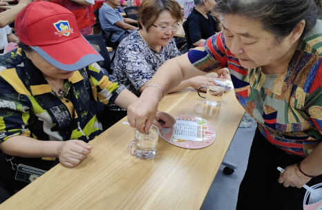 活動現(xiàn)場,志愿者生動介紹七夕的來歷以及相關(guān)民俗活動,讓大家深刻體會乞巧活動的文化寓意和內(nèi)涵,感受七夕文化所蘊含的美好情懷。乞巧活動精彩紛呈,在“穿針取巧”環(huán)節(jié),居民手拿五色彩線,找準(zhǔn)針孔細(xì)心穿線,比賽誰穿得越快,乞到的巧就越多。大家聚精會神地捻線穿針,手藝巧的輕輕松松就穿進(jìn),穿針困難的居民也在志愿者的指導(dǎo)下穿線成功。“投針驗巧”是通過把繡針放入形成水膜的容器中,看其能否漂浮、在容器底部形成圖案,以驗智巧。居民們躍躍欲試,小心翼翼地放下細(xì)針,看著水杯中成功漂浮的銀針,露出燦爛的笑容。