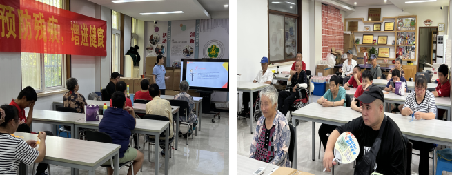 活動前期社區(qū)利用宣傳欄、電子顯示屏、微信公眾號大力宣傳殘疾預(yù)防的相關(guān)知識?;顒又?,社區(qū)康復(fù)站治療師李莉通過圖文講解、案例分享的方式為社區(qū)居民及殘疾人講解了遺傳、發(fā)育障礙、疾病等致殘的相關(guān)知識,引導(dǎo)社區(qū)居民了解預(yù)防殘疾的必要性,幫助大家提升日常自我防護(hù)能力,遠(yuǎn)離致殘風(fēng)險。