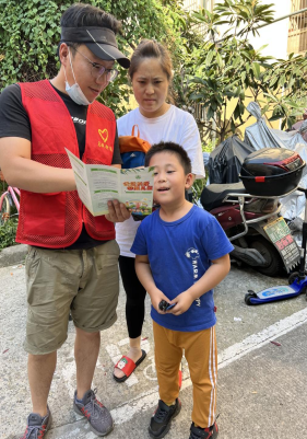 社區(qū)網(wǎng)格志愿者向孩子們和家長發(fā)放《關(guān)愛未成年人應知應會》和《公益關(guān)愛困境兒童》手冊,并詳細講解未成年人保護知識,提醒家長多關(guān)心孩子,鼓勵孩子們好好學習。