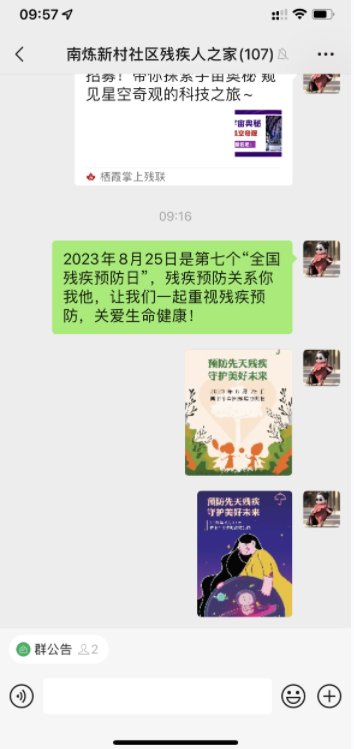 活動(dòng)前夕,南煉新村社區(qū)殘協(xié)在殘疾人之家微信群大力宣傳殘疾預(yù)防核心知識(shí),同時(shí)依托殘疾人之家等社區(qū)居民服務(wù)場(chǎng)所,針對(duì)不同群體開(kāi)展定向宣傳?;顒?dòng)當(dāng)天,社區(qū)殘協(xié)的青年志愿者通過(guò)深入淺出講解一二級(jí)預(yù)防措施,以及因先天、遺傳、意外傷害等致殘的預(yù)防知識(shí),幫助居民認(rèn)識(shí)殘疾預(yù)防的緊迫性,在提升預(yù)防勝于治療、“每個(gè)人都是自己健康的第一責(zé)任人”的意識(shí)中,講述體育鍛煉、合理膳食、良好心情、健康生活習(xí)慣的重要性。