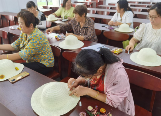 在手工制作環(huán)節(jié),工作人員為大家詳細(xì)講解了手工制作的流程。他們耐心指導(dǎo)每位參與者,保證他們能夠親身體驗(yàn)并完成各種手工制作。“一粘、一貼、一按”不一會(huì)功夫,一頂頂美麗的草帽就展現(xiàn)在大家的眼前。這種沉浸式的過(guò)程不僅能夠讓殘疾人放松身心,釋放壓力,還能培養(yǎng)他們的耐心和專注力。
