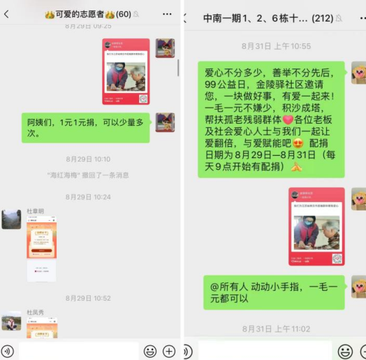 為響應(yīng)國(guó)家9月5日“中華慈善日”的號(hào)召,金陵驛社區(qū)通過(guò)掌云網(wǎng)格群、微信朋友圈、社區(qū)公眾號(hào)等網(wǎng)絡(luò)平臺(tái)進(jìn)行廣泛宣傳,積極發(fā)動(dòng)轄區(qū)居民獻(xiàn)出愛心、參與捐贈(zèng),通過(guò)“指尖慈善”的愛心接力形式,幫助身邊的困難群眾。志愿者們帶頭響應(yīng),踴躍捐助。