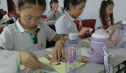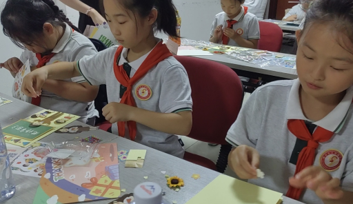 介紹完成后,志愿者們依次為小朋友們分發(fā)制作賀卡的材料,小朋友們按照說(shuō)明書(shū)的講解拆開(kāi)包裝,擺好材料,進(jìn)行設(shè)計(jì),然后拼接粘貼,將內(nèi)卡片以及外卡片一一制作成功,最后使用金色絲線(xiàn)將卡片綁上精致的蝴蝶結(jié),大家的教師卡賀卡就完美制作成功了。