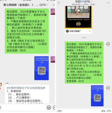 社區(qū)工作人員通過(guò)掌上云網(wǎng)格群群宣傳到位,明確說(shuō)明申請(qǐng)時(shí)間、地點(diǎn)、注意事項(xiàng)及所需材料,爭(zhēng)取做到家喻戶曉,確保不遺漏一個(gè)人,確保轄區(qū)內(nèi)居民廣泛了解,避免群眾多跑腿,更好地服務(wù)居民,讓轄區(qū)居民切實(shí)享受到獨(dú)生子女父母獎(jiǎng)勵(lì)政策。