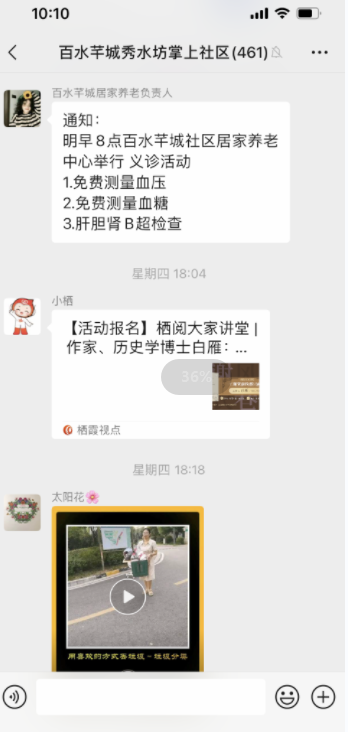 義診前,百水芊城社區(qū)居家養(yǎng)老服務(wù)站人員通過“掌上云”微信群、電話、入戶等宣傳方式提前廣泛告知,提高居民的知曉度,傳達體檢時間、地點和注意事項,發(fā)動老年居民積極參與到免費體檢活動中來。